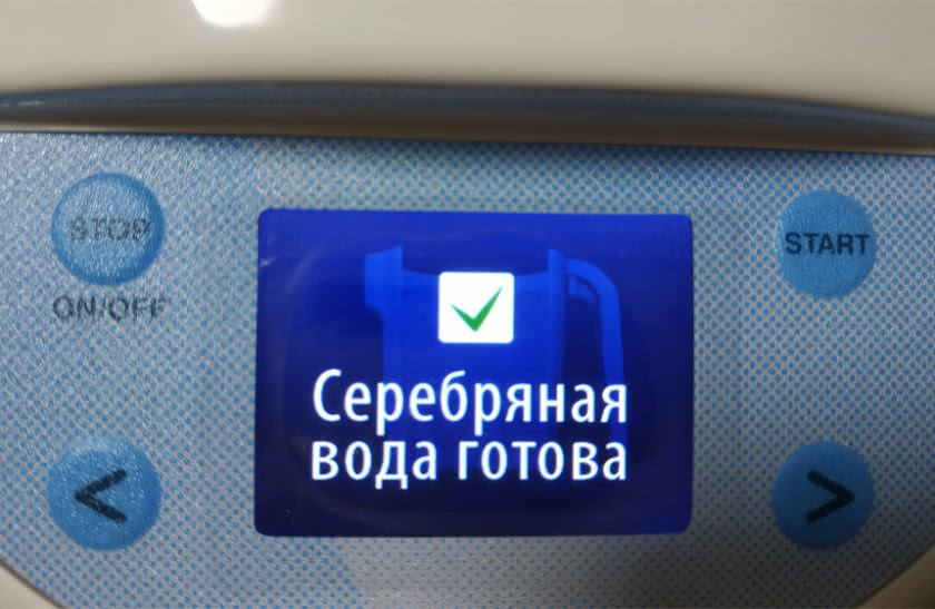 Если захочется, то можно максимально быстро, за несколько секунд, сделать 3 л посеребренной жидкости. Отключение у прибора автоматическое, есть оповещение звуковым сигналом.