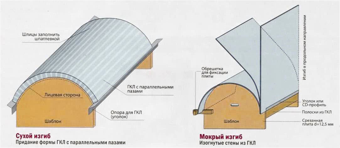 Отметим, что в изготовлении межкомнатных арок чаще всего применяется более тонкий материал. Лист гипсокартона, можно согнуть двумя способами: