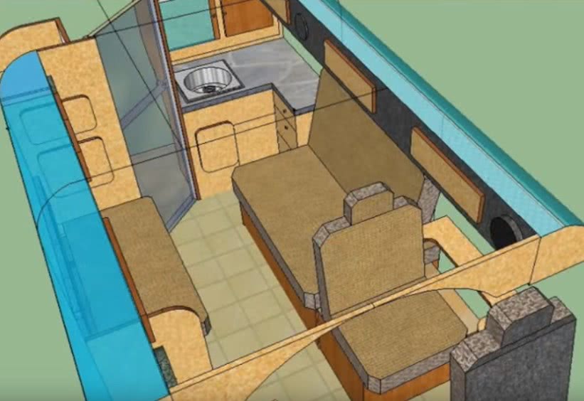 Чтобы автодом имел приличный вид и был уютным, стоит заранее продумать его дизайн. Согласно стандартам, в одном домике должно помещаться 6-8 человек. В автодоме должна быть небольшая кухня, спальные места, а также раковина, газовая или индукционная плита, туалет.
