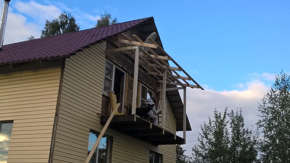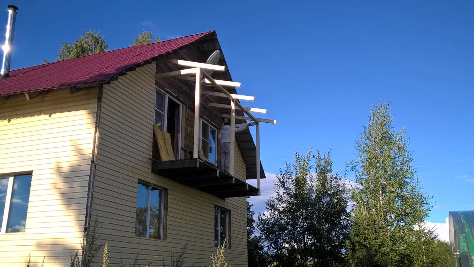 Всем привет.Построили мы себе дом в деревне, живем в нем уже больше четырех лет. В доме изначально планировали сделать балкон, при стройке балки выпустил, пол уложил и все, так он прожил четыре года и я стал переживать за балки, они ведь деревянные. В этом году взял отпуск и решил сделать навес над балконом, чтобы балки не гнили и тут понеслось… смотрим фото и подписи к ним.