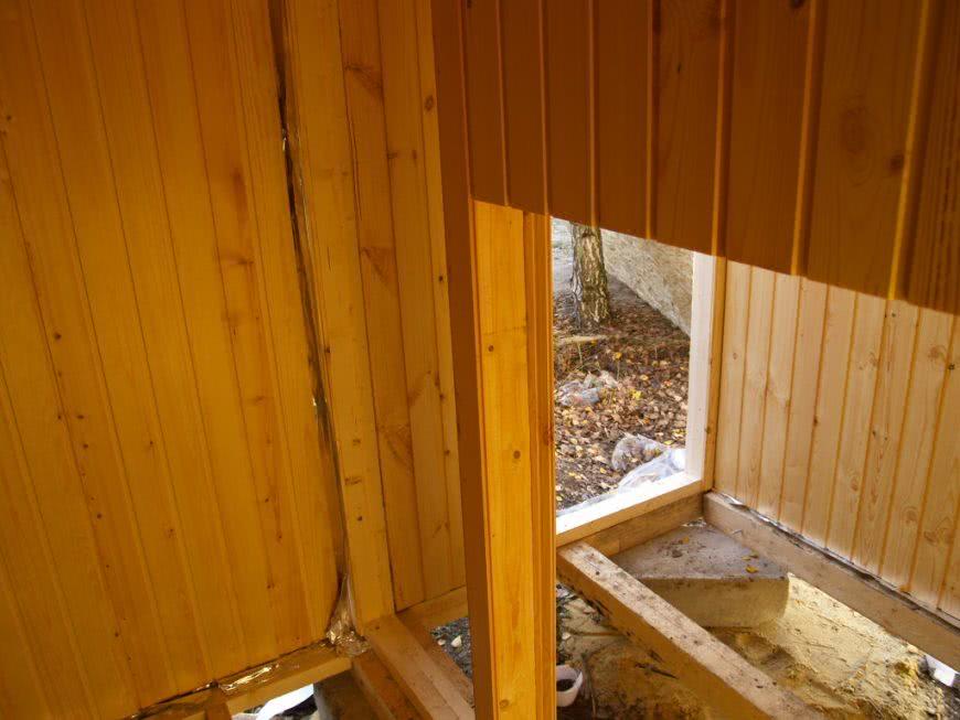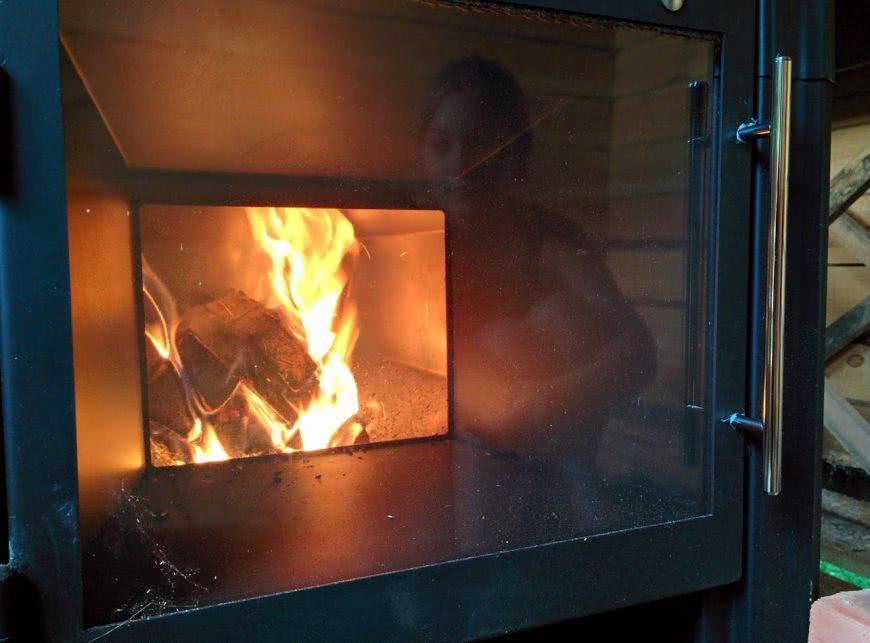 Выбирать окна и двери следует деревянные или стеклянные, так как пластик быстро придет в негодность под воздействием высоких температур. При монтаже все щели тщательно запенить, чтобы избежать потери тепла.