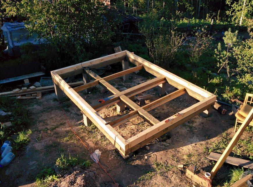 При ее изготовлении используются только плоские доски – без бруса и кругляков. Основанием здания служит каркас, связывающий все строение и опирающийся на фундамент.