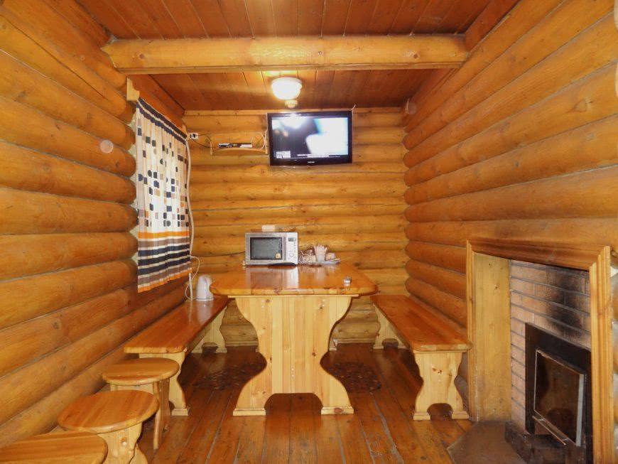 В ограниченном пространстве приходится совмещать предбанник, раздевалку и топку.