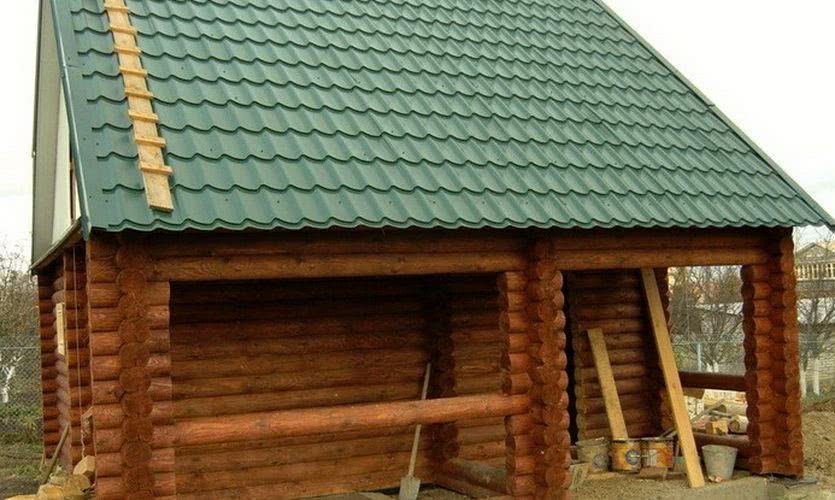 Завершающий этап строительства бани — настил кровли. После того, как произойдет естественная усадка каркаса строения (то есть, через несколько месяцев) можно начинать кровельные работы. Самый простой и бюджетный вариант в данном случае – плоская односкатная крыша.