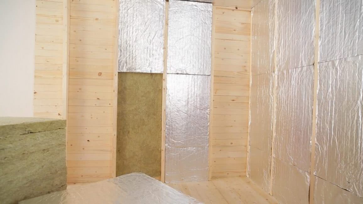 В процессе разогрева влага, конденсат проникает в зазоры между планками, скапливается в полости между вагонкой и стеной, потолком. С целью исключения проникновения влаги внутрь стены бани, на пути конденсата устанавливают влагостойкий барьер. Для предотвращения потери тепла укладывают утеплитель.