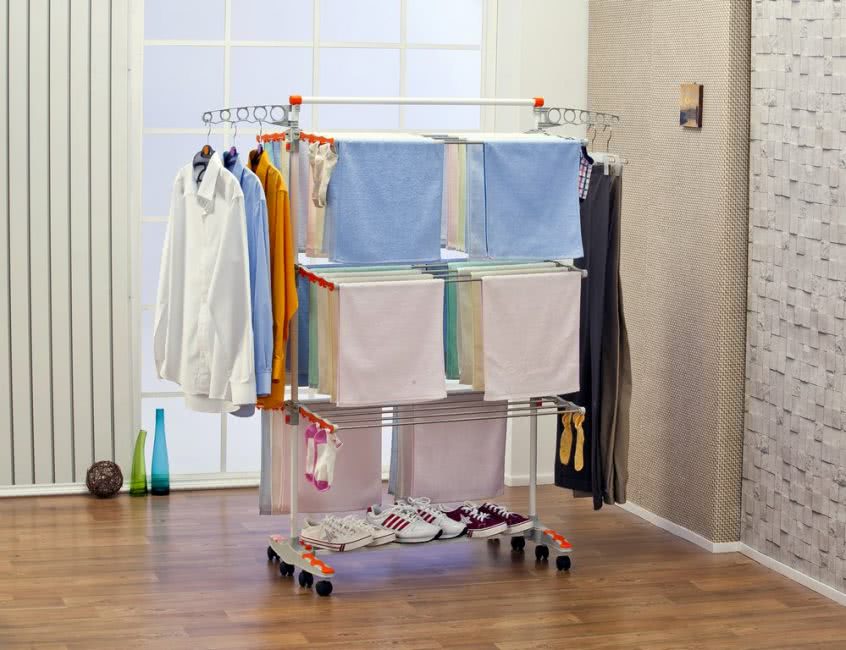 - В случае раздвижных моделей, стоящих на полу, можно создать дополнительное пространство для сушки;