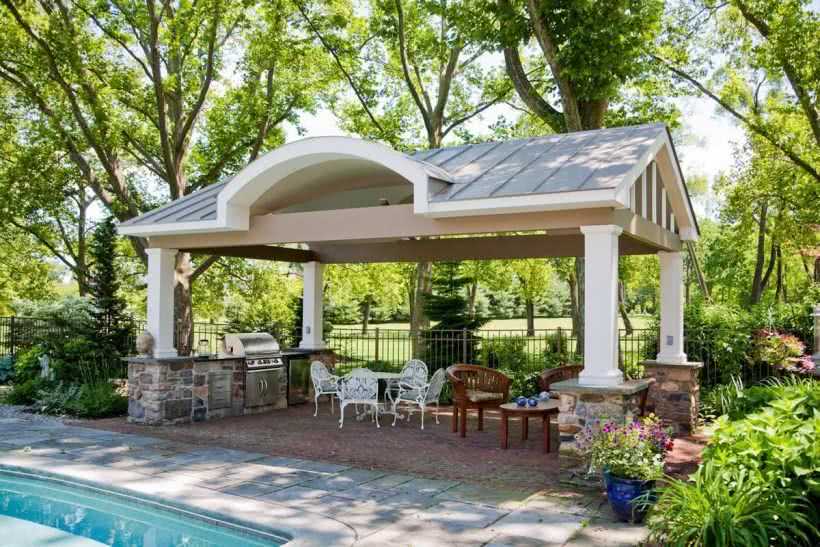 Если вы уже знаете, где хотите установить свою новую беседку, можете начинать думать о дизайнах, которые вам действительно нравятся. Хотите что-то открытое, как этот пример? А может вам больше нравятся закрытые сооружения.