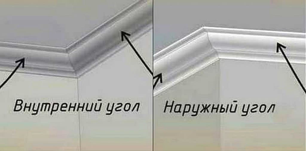 Внутренний и внешний углы потолочного плинтуса оформляется по-разному