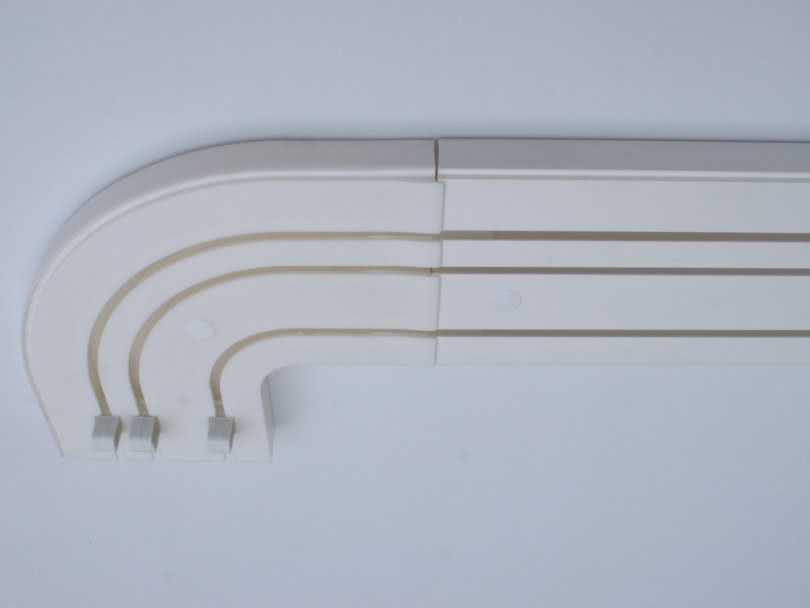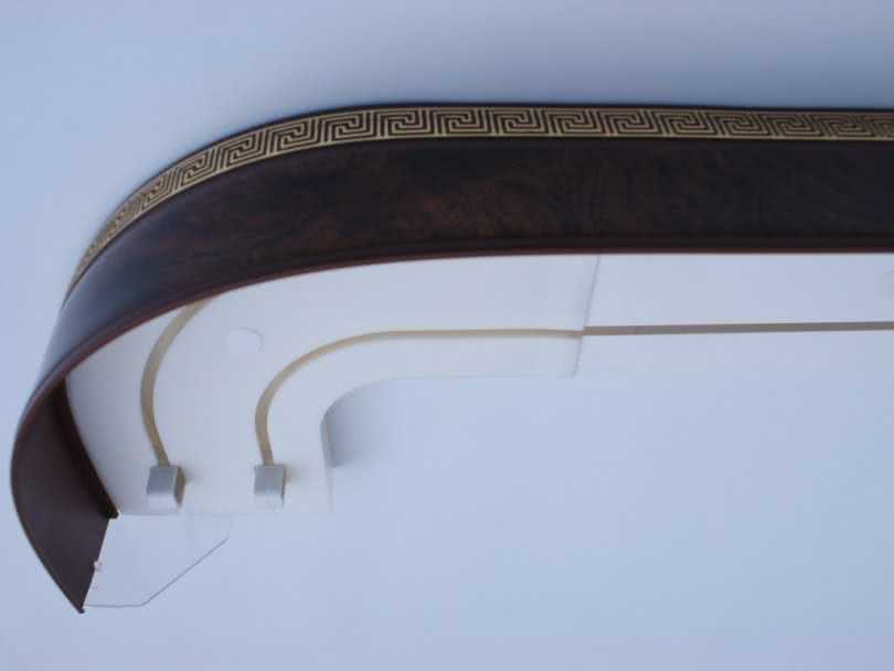 | Пластмассовые шины традиционно являются конструктивной частью карнизов с деревянной багетной или с декоративной пластиковой планкой, ламинированной покрытием под ценные породы дерева. Карнизы крепятся как в потолок так и в стену. Вы можете приобрести такие карнизы с поворотными элементами или без них; целые карнизы или составные. |