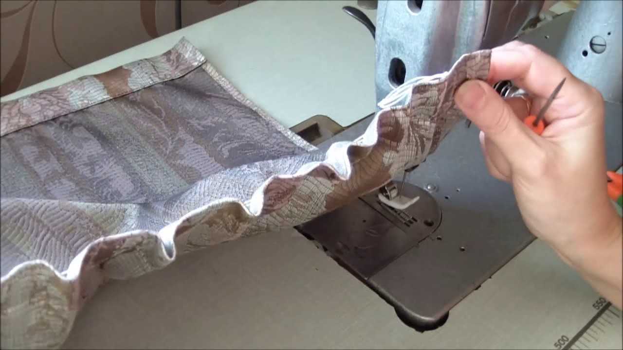 Используя швейную машинку, тесьма пришивается к занавеске или тюли. Количество швов будет равно количеству веревочек ленты.