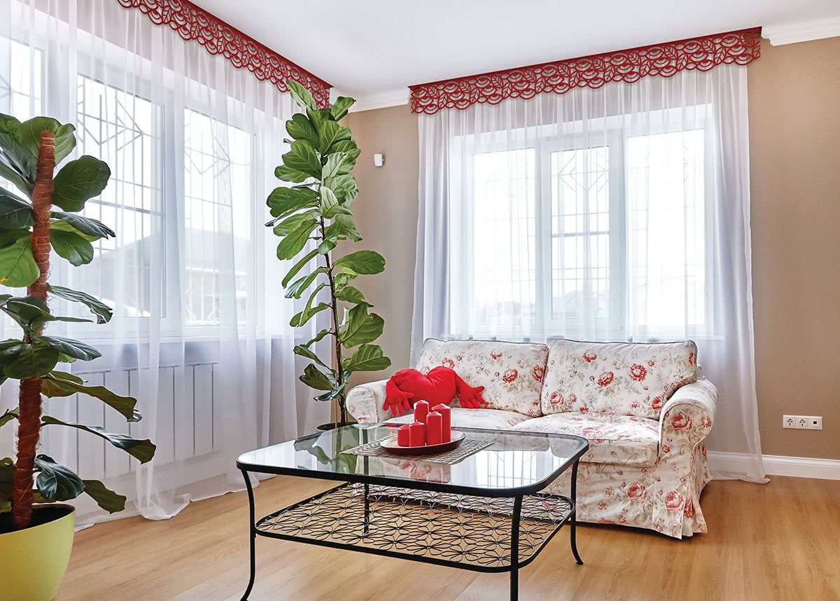 Создать эффектную декорацию карниза можно с помощью ажурных ламбрекенов. Они продаются в рулонах, бывают разной ширины, вы всегда можете приобрести необходимый метраж. Также ламбрекены есть и строго на проем стандартной длины. Цветовая гамма у них не очень широкая, но подобрана под все стили, так что всегда можно найти подходящую модель.