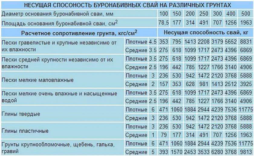 - Несущая способность. Зависит от размера столба. Если это элемент в 300 мм, то она выдержит нагрузку в 1,7 тонны, конструкция диаметра в 450 мм выдержит уже от 4,3 тонны.