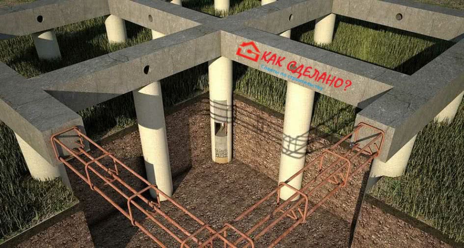 Зато их усовершенствованный вид — свайный фундамент с ростверком — лишен многих недостатков и может использоваться и под кирпичные, и под блочные постройки. В них все опоры завязаны при помощи ленты из металла или железобетона (бетона) в единую конструкцию. Эта лента и называется ростверком.