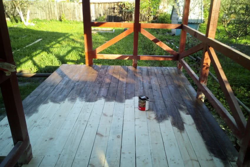 Обычный лак и пленочные покрытия для открытого пола не подходят, они не обеспечивают достаточную защиту досок и после первой зимы вам, скорее всего, придется делать ремонт заново.
