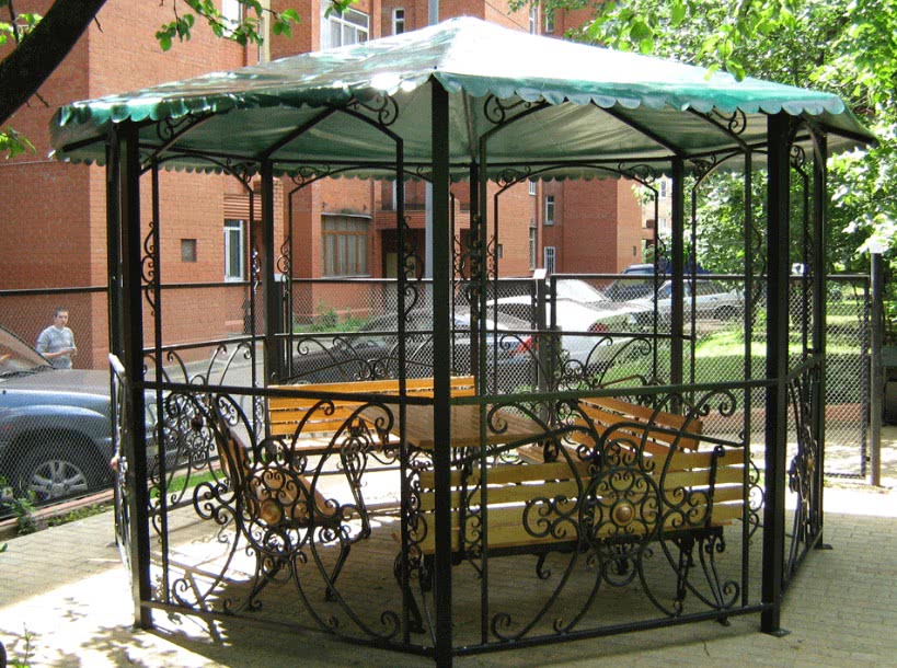 - изящная форма сооружения, оформление коваными витыми узорами;