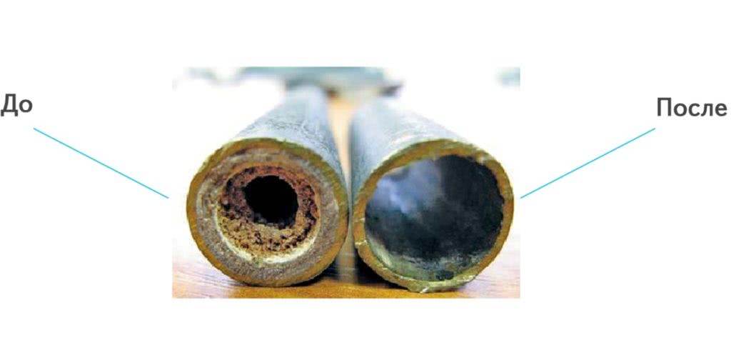 - обильно промыть водой трубопровод для удаления остатков реагентов.
