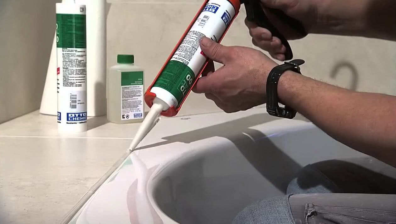 Душевая кабина, ванна и раковина при монтаже герметизируются, чтобы между ними и кафелем не попала вода. В этом случае придется подумать, чем оттереть силиконовый герметик.
