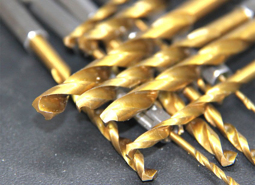 - Желтоватый оттенок (золотистый) в основном только рабочей части сверла — защитное покрытие на основе соединений титана, повышающее прочность режущей кромки и всей рабочей части.