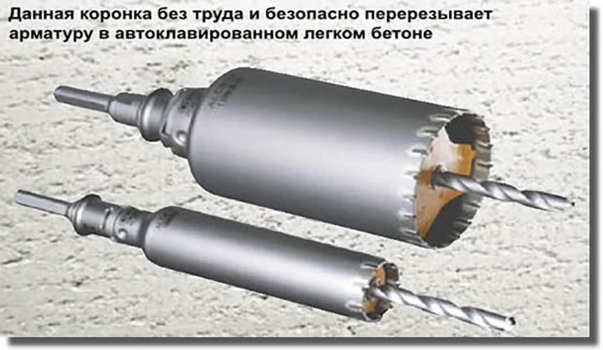 Самое сложное препятствие, которое приходится преодолевать при бурении бетонной стены – это арматурный каркас. Стальные прутья небольшого диаметра алмазная коронка режет самостоятельно. При сверлении ударной дрелью, для борьбы с арматурой следует использовать сверла по металлу.