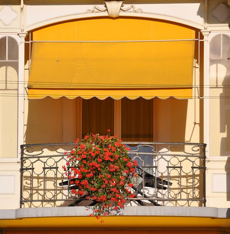 Как закрыть балкон от солнечных лучей частично? С этим превосходно справляются тенты из плотной брезентовой ткани, именуемые маркизами. Они не перекрывают само оконный проём, а выставляются в виде своеобразного козырька перед ним. Могут быть как съёмного типа, так и стационарного.