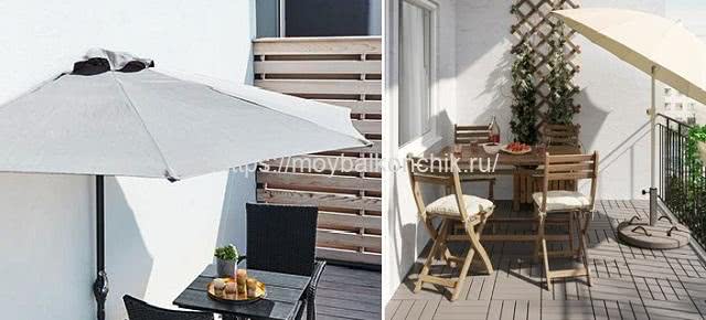 Если вы хотите сохранить и без того ограниченную площадь балкона, лучше всего выбирать зонтики, которые крепятся к перилам или ребрам.