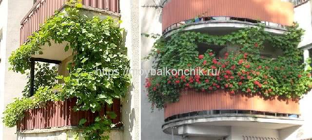 Цветоводы близко знакомы с еще одним способом создания полутени – использованием хорошо развивающихся на солнце растений для балкона. Любые комнатные цветы не подойдут, необходимо выбирать сорта, специально выведенные для южной стороны. Поскольку нужно создать вертикальное озеленение, следует остановиться на ампельных, вьющихся, дающих длинные побеги или пышных растениях.