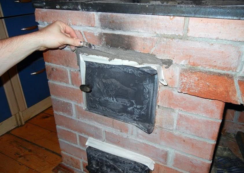 Как правило, печной комплекс в жилом доме включает в себя наличие металлических вставок — дверей или плиты. Кладка и металл отличаются коэффициентом теплового расширения, это способно спровоцировать разрушение целостности конструкции. Для работы по устранению повреждения подойдут: