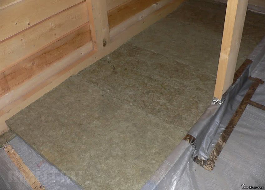 Шаг № 3. В проемы деревянных перекрытий на полу выложить (насыпать) утеплитель.