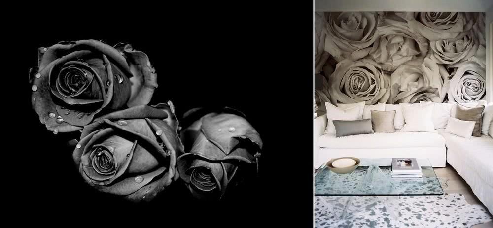Черно-белые обои с цветами – это, как правило, дизайнерские обои. Их можно наклеивать не только в городских квартирах, но и в загородных коттеджах и дачных домиках.