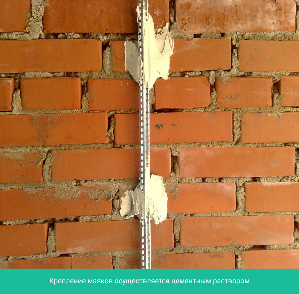 Обрызг. Это нанесение первого слоя штукатурки между двумя маяками, где должен использоваться более жидкий состав, нежели для основного покрытия. Смесь наносят на подготовленную основу методом «наброса» при помощи кельмы или шпателя. Для бетона толщина обрызга составляет 3 мм, для кирпича – 7 мм, для дерева – 1 см.