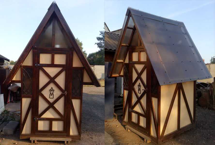 - эстетичный внешний вид. Если теремок снаружи украсить кованными навесами, щеколдами и резными окошками, он станет похожим на настоящий сказочный домик.