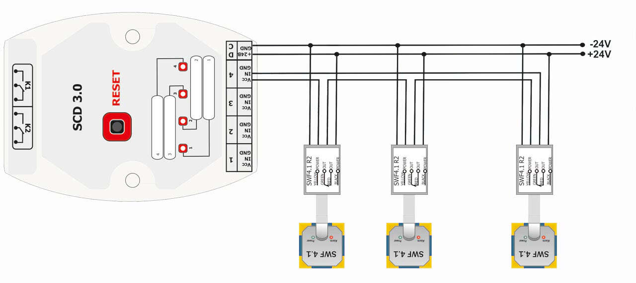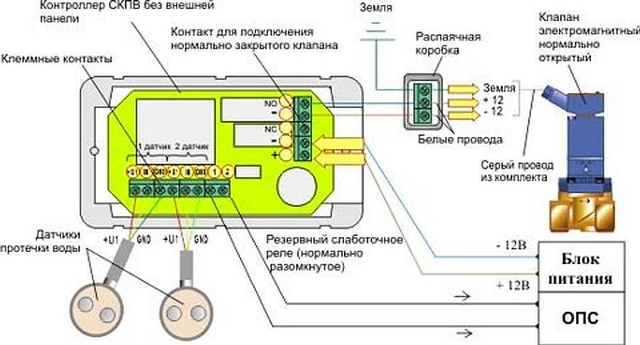 Датчики следует располагать в местах с высоким риском протечек: под душевыми кабинами и ванными; за раковинами и умывальниками; возле унитазов, стиральных и посудомоечных машин. При этом, сила тока в проводах датчиков абсолютно безопасна, а сила тока в проводах крана хоть и достигает 1 А, но действует всего несколько секунд, поэтому разница рабочих напряжений вовсе несущественна.