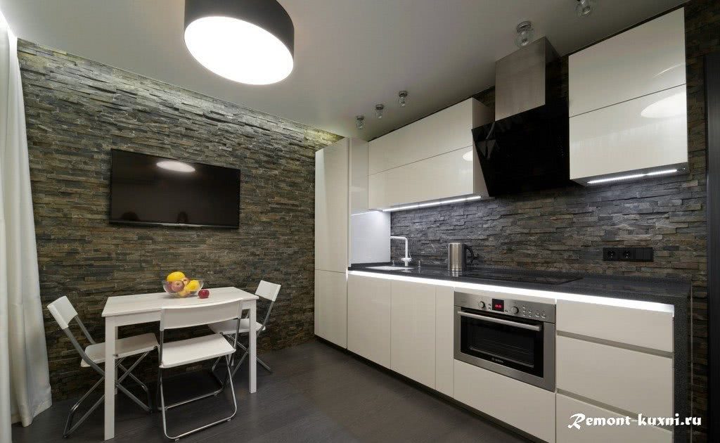 Внимание! Отделка кухни декоративным камнем – дорогостоящий вид ремонта. Но смотрится такой интерьер роскошно