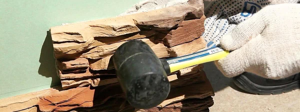 Ряд искусственного камня следует укладывать горизонтально. Для удобства рекомендуется нанести на стену разметку. Начинается оформление от одного из углов. Иногда встречаются специальные изделия угловой плитки. Работать с ней проще. Предварительно нужно осмотреть тыльную сторону камня на наличие тонкого слоя налета. Если он присутствует, следует его удалить.