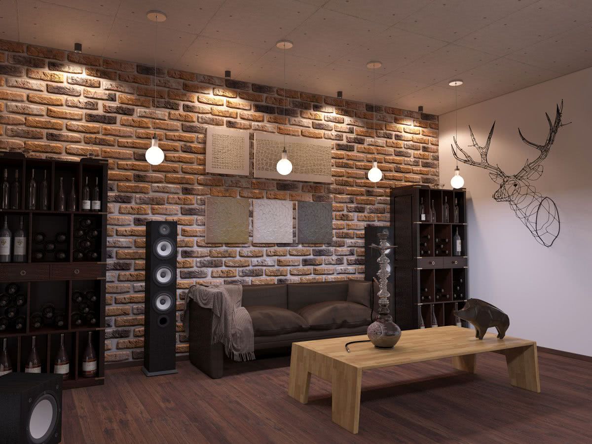 Отделка всех стен кирпичом – не самый лучший вариант. К такому решению прибегают только в том случае, если нужно воссоздать атмосферу древнего замка. В противном случае кирпичные стены будут подавляющим образом влиять на людей, находящихся в таком помещении. Оптимальный вариант – отделка одной или двух стен. Часто декоративным кирпичом оформляют участки стен возле каминов и дверей или углы.