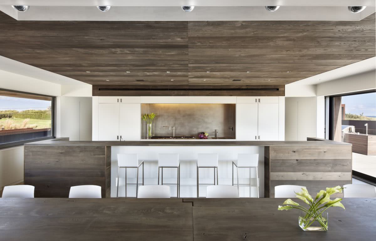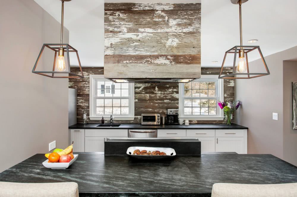 Кухонный интерьер — это пространство широких возможностей для использования элементов из переработанного дерева. И вновь такие маленькие предметы, как светильники могут оживить однообразный дизайн, а большой и заметный стол из натуральной древесины — стать уютным и стильным акцентом кухонного интерьера.