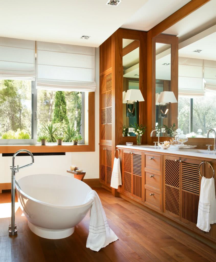 - Существует предвзятое мнение, что древесина не годится для ванной комнаты. Но как хороши сами ванные, выполненные из массива дорогих сортов дерева! Находиться в них так же приятно, как купаться в озере в окружении леса.