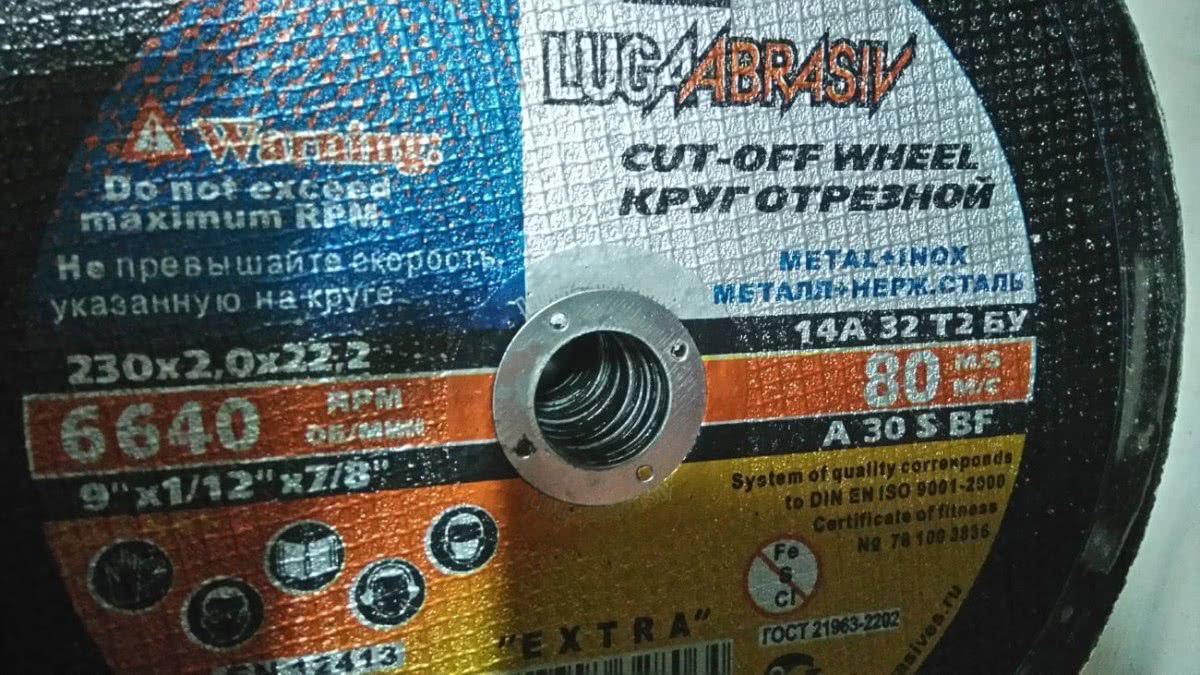 | Отрезные (абразивные) | Самый популярный вид продукции. Абразивные зерна представляют собой карбид кремния или электрокорунд. В продаже можно встретить изделия на вулканитовой или бакелитовой связке. Маркировка указывает на сферу использования (сталь, бетон, камень, нержавейка, алюминий, чугун и так далее). Срок годности не превышает одного года. |