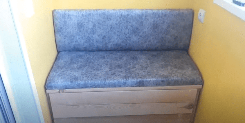 Сложнее всего делать именно раскладной диван. Здесь вам потребуется выбрать подходящий механизм раскладывания диванных подушек, а также продумать, как сделать его, чтобы он удобно раскрывался в имеющихся балконных условиях.