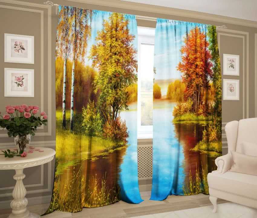 Если выбор заостряется на многочисленных лишних деталях, можно обратить внимание на простые шторы с рисунком в технике 3D. Они являются одними из самых популярных и наиболее разнообразных вариантов.