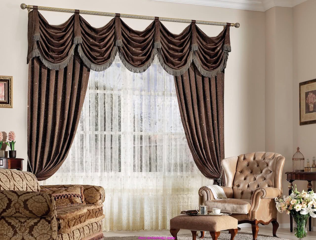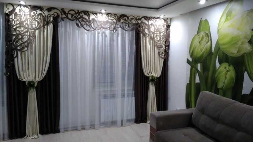 Красивые и современные занавески, гардины, шторы должны сочетаться по фактуре и тону. В выборе также необходимо учитывать интерьер помещения в целом. Создавая варианты для оформления дизайна окна гостиной и других комнат нужно учитывать освещенность помещения, его размеры, высоту потолков, предметы интерьера.