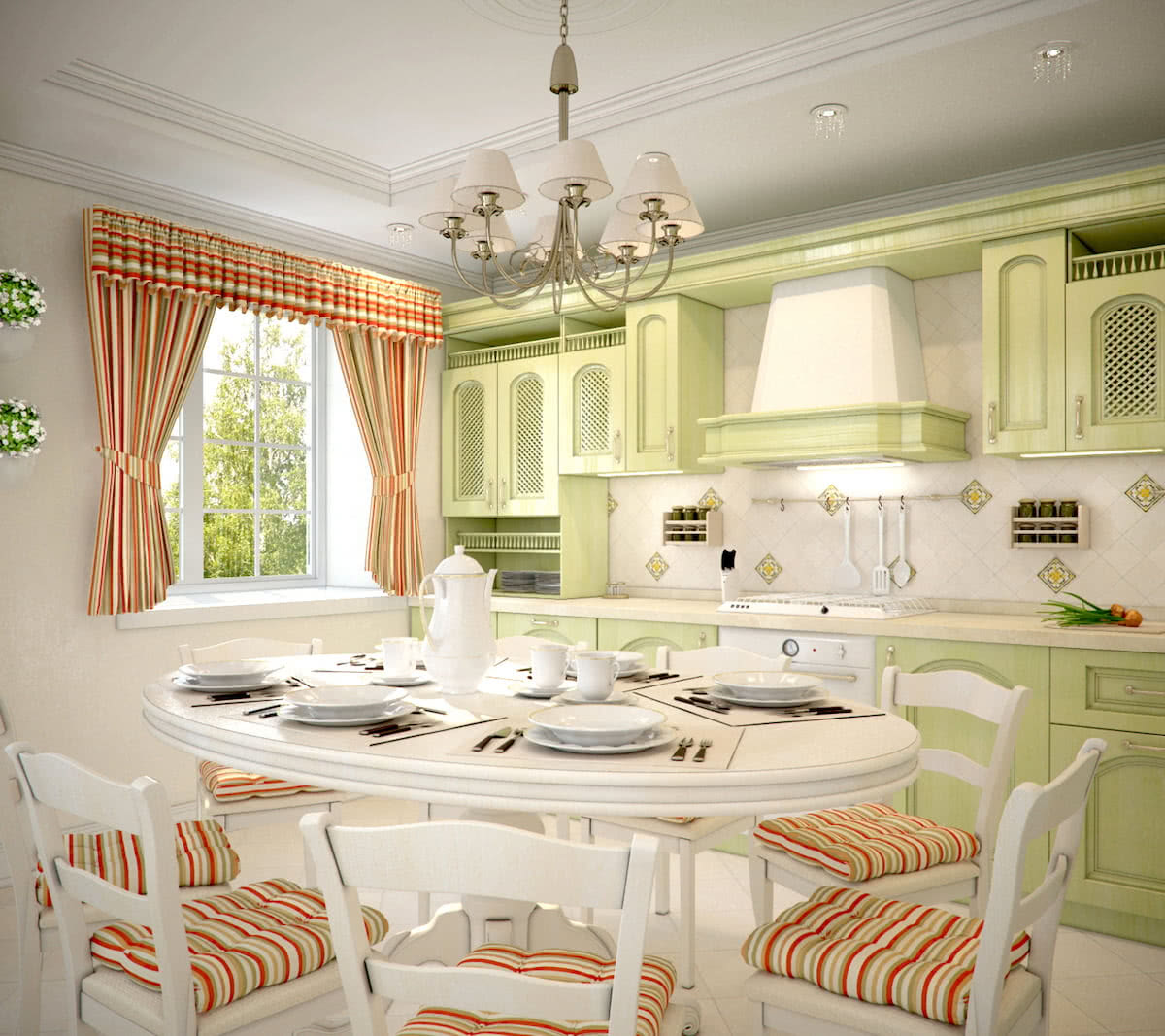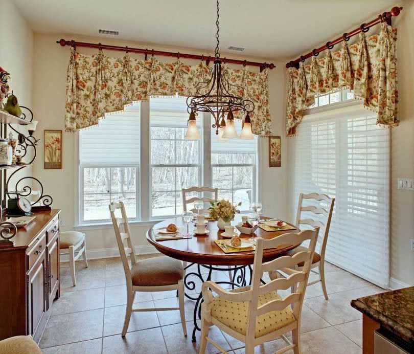 В качестве исключения, выступают помещения, оформленные в стиле «прованс». Там допускаются яркие акценты на занавесках.
