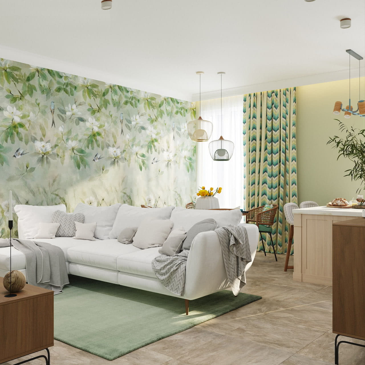 Следует изучить вопрос ориентации квартиры по сторонам света. Окна, находящиеся с южной стороны, всегда пронизаны лучами солнца. Сюда подойдут зелёные, бирюзовые, голубые, лиловые и мятный тона.