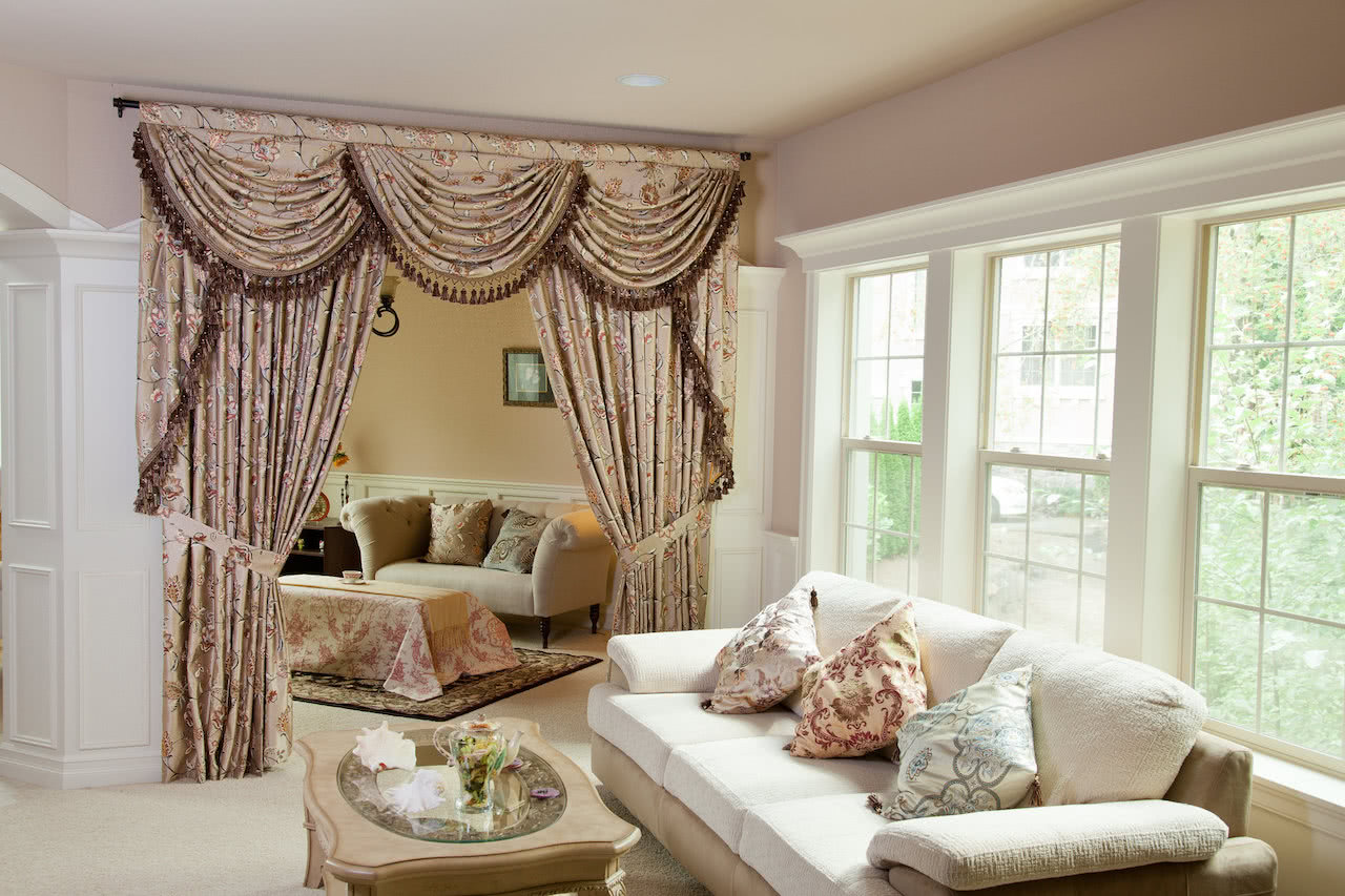 Поклонникам классики для придания особого шика интерьеру стоит присмотреться к французским шторам-ламбрекенам. Они способны дополнить просторное помещение, придав ему особую роскошь.