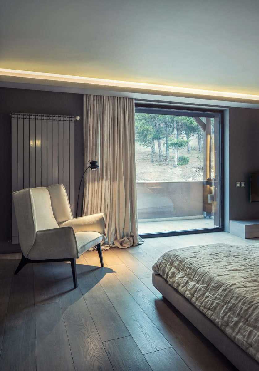 Для сглаживания внешних шумов, защиты от сквозняков и выстраивания желаемого уровня тени можно выбрать функциональные шторы «блэкаут». Отказаться стоит от варианта жалюзи — их лучше заменить на рулонные шторы.