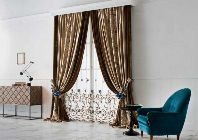 Классика никогда не выходит из моды, изменяются только отдельные элементы. Классический стиль подразумевает сочетание двух абсолютно разных материалов. Нижний слой состоит из нежнейшего тюля. Верхний слой — плотные гардины, служащие как для красоты, так и для того, чтобы полностью занавесить оконный проем в случае необходимости.