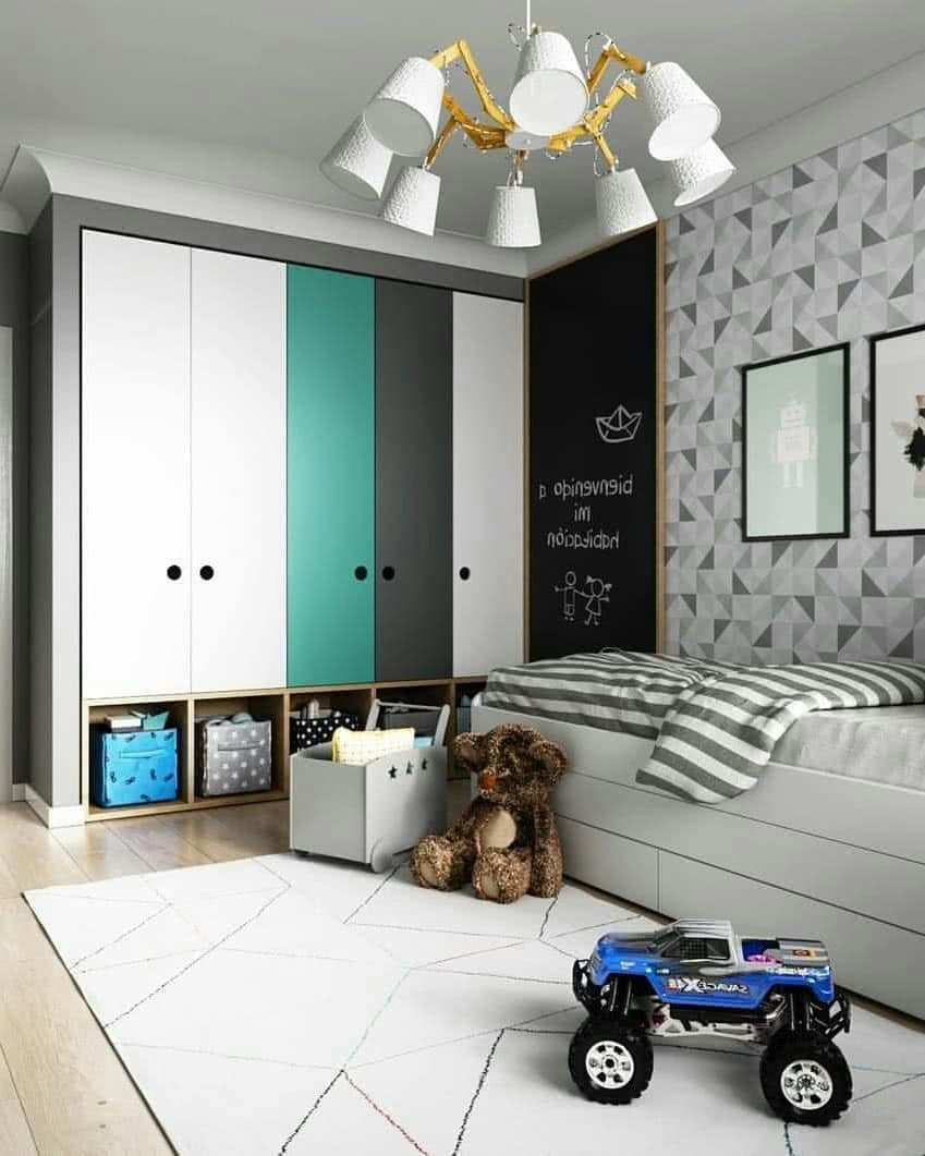 В детской комнате всегда будет царить ощущение порядка, если личные вещи юноши хранятся в специально отведенных закрытых местах. Чем их больше, тем легче будет хозяину комнаты поддерживать порядок.
