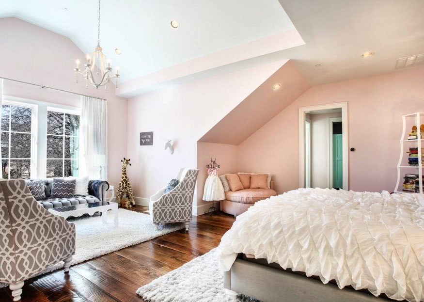 Не забывай о выборе красивого белья и подушек. Такие мелочи радуют и маленьких принцесс, и девочек-подростков. Интересным решением может стать балдахин у кровати, но учитывай, что любой текстиль требует постоянного ухода. Девочек постарше порадует собственный туалетный столик. Там она сможет хранить свои украшения, первую косметику и другие приятные мелочи. Если хватит места для зоны отдыха, подумай о маленьком уютном диване или пуфах. Большинство подростков в восторге от кресел-мешков. И позаботься о дополнительном освещении в этой зоне.