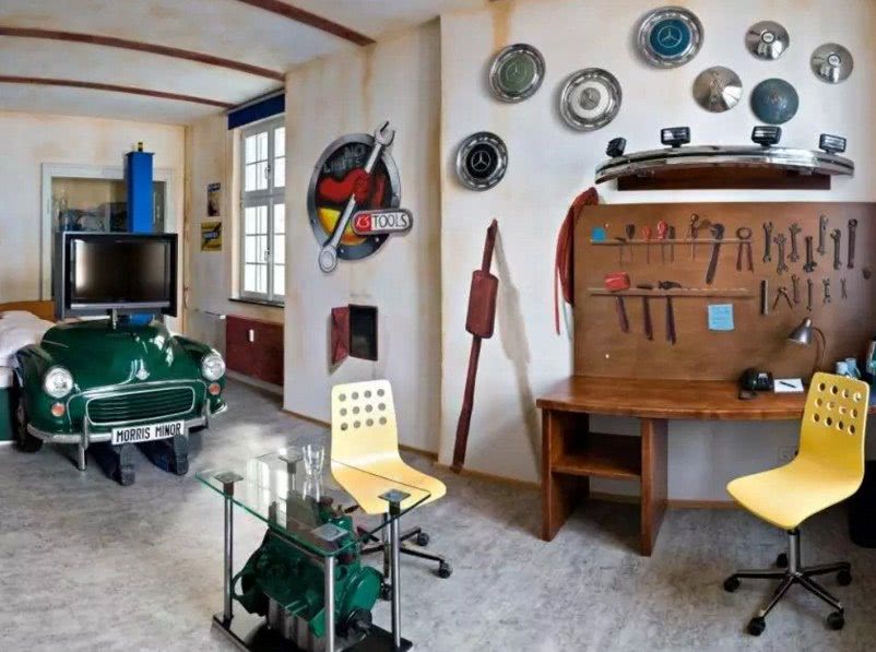 Не исключено, что через 2–3 года его увлечения кардинально изменятся, поэтому зону хобби следует оформить так, чтобы, когда наступит время, можно было без труда изменить интерьер с помощью косметического ремонта.