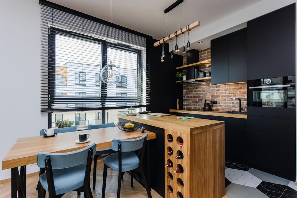 Необязательно сносить перегородку полностью. Ее можно превратить в барную стойку или, использовать в качестве основания под столешницу.